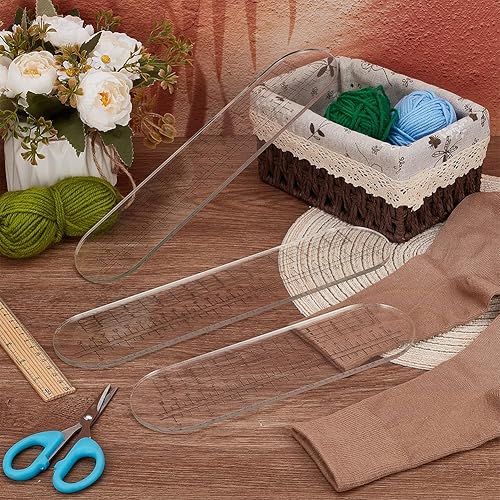 OLYCRAFT 3Pcs 2 tailles règle pour Chaussettes pour Tricot Crochet Sans Trou 22.5/30cm en Acrylique Transparent pour Crochet pour Chaussettes pour Tricot Crochet Mesure pour Chaussettes Bricolage