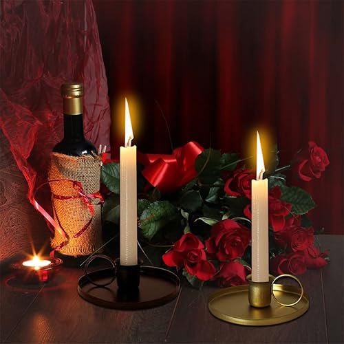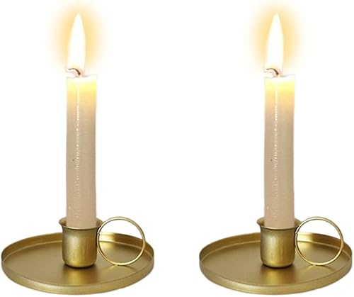 Zayookey 2 Pièces Bougeoir de Métal, Vintage Chandelier avec Poignée et Plateau, Candle Holder Porte-Bougie Conique pour Mariage Noël Décor À Maison (Doré)