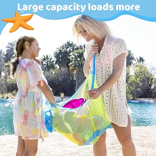 Sac de Plage, 2 Pièce Sac Plage Jouet, Sac de Plage en Filet Pliable, Pliable Rangement de Jouets de Plage, Sac Réutilisable Grand Sac Jeux de Plage pour enfants pour Le Transport de Jouets