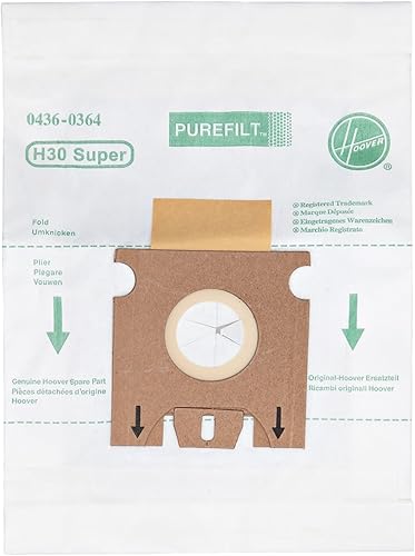 HOOVER H30S Sacs pour Aspirateurs Hoover - Compatibles avec les Aspirateurs Hoover Télios, Télios Plus, Arianne, Octopus et Discovery - Sacs d'Origine - Anti-Odeur - Lot de 5 Pièces