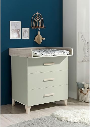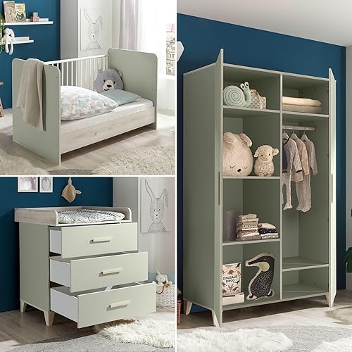 Stella Trading Prizzi Complet Aspect Ensemble de Meubles pour Chambre 3 pièces composé d'une Armoire, d'un lit de bébé et d'une Commode à Langer, Bois, Vert Pastel/Aurum, Komplett-Set 2