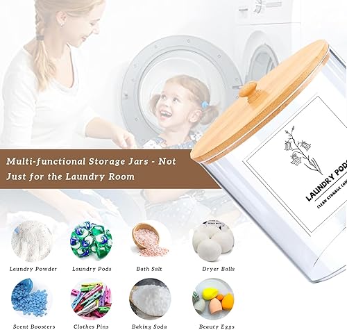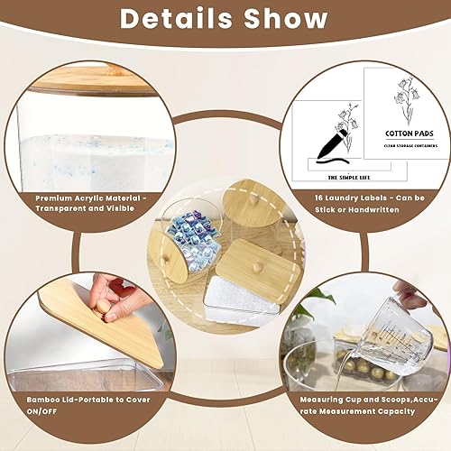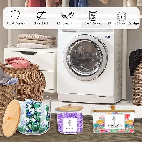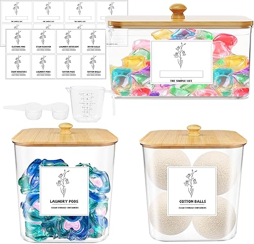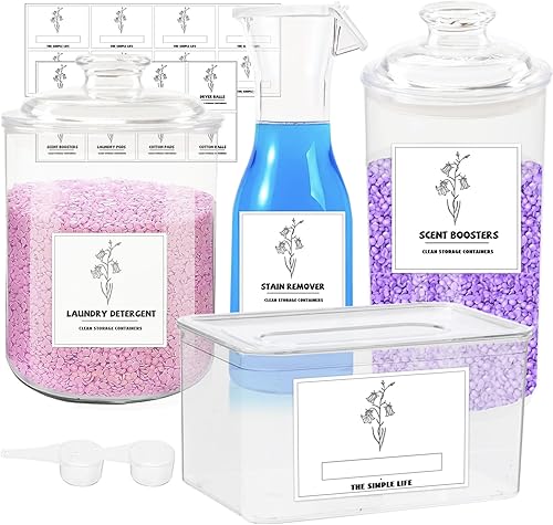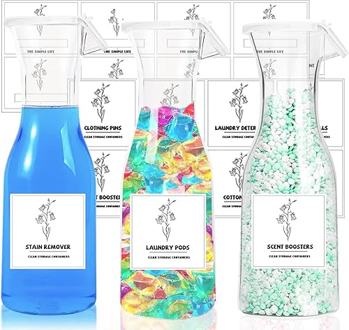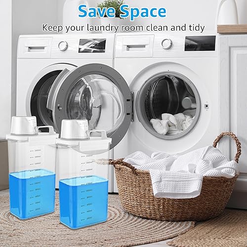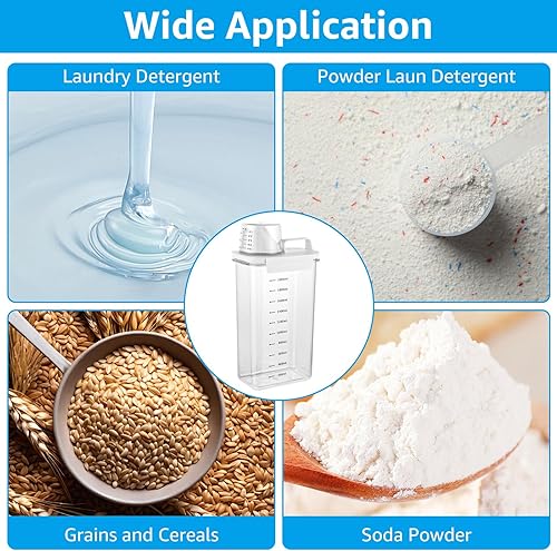 lot de 3 distributeur de lessive,distributeur de lessive avec 16 étiquettes,2 Cuillères et une tasse à mesurer,Boîte à Détergent pour Capsules de Lessive/Boules de Séchage/Pinces à Linge/Lessive