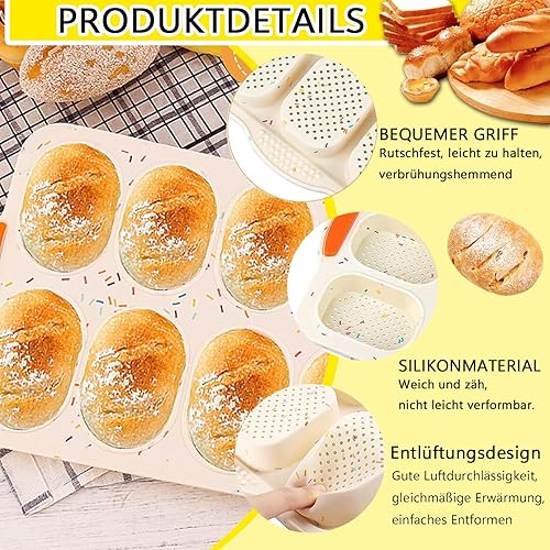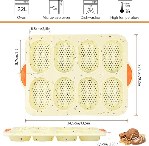 Pain Français Moule de Cuisson, Moule à Pain Baguette en Silicone, Moule à Pain à 8 Cavités, pour la Cuisson du Pain Français, des Gressins, des Petits Pains, du Pain