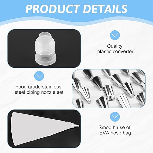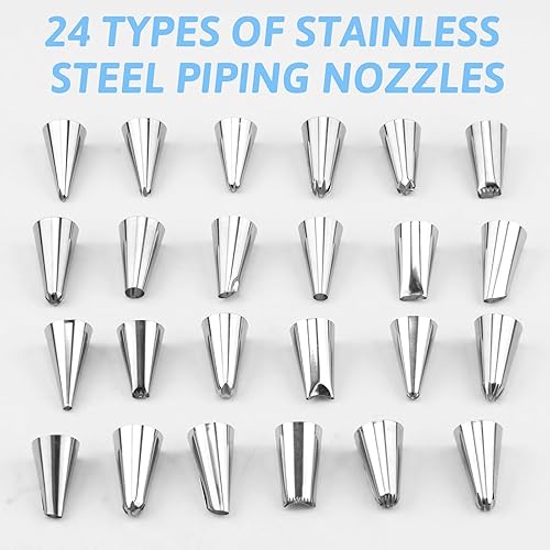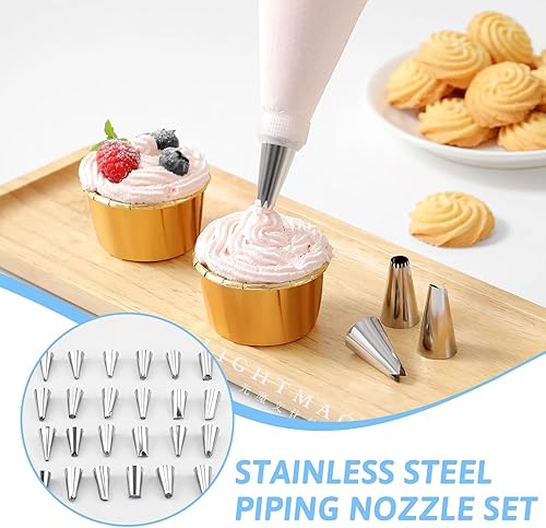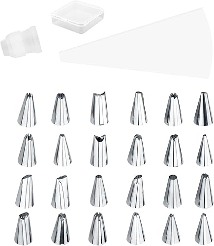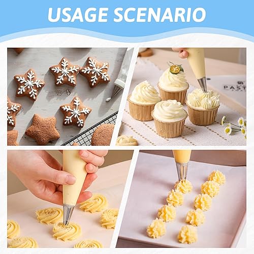 24 Pièces Poche a Douille Pâtisserie avec Douilles en Acier Inoxydable, Poche à Douille Réutilisable en Coton 31 cm pour Décoration de Gâteaux, Cupcakes et Biscuits, Facile à Nettoyer et Entretenir