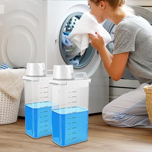 ZOFUN Lot de 2 boîtes de rangement pour poudre à lessive, 2300 ml, distributeur de lessive hermétique, avec verre doseur, distributeur de poudre à laver, récipient de stockage pour lessive - Blanc