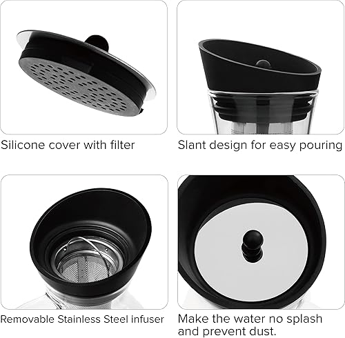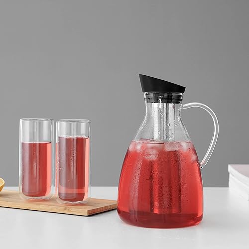 Viva Scandinavia Carafe en Verre avec infuseur et Couvercle à Bec verseur en Silicone Amovible, Convient pour Boissons Froides et Chaudes, 2.0 l Infusion