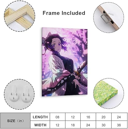 nuomesc Demon Slayer Shinobu Poster au personnage de Kocho Peinture décorative sur toile Art mural pour salon, chambre à coucher, 30 x 45 cm