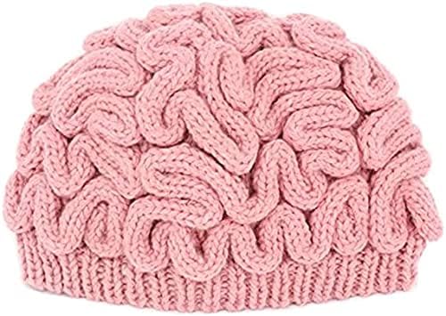 Gokame Chapeau de cerveau tricoté à la main unisexe - Fait à la main - Bonnet unique pour Halloween - Rose