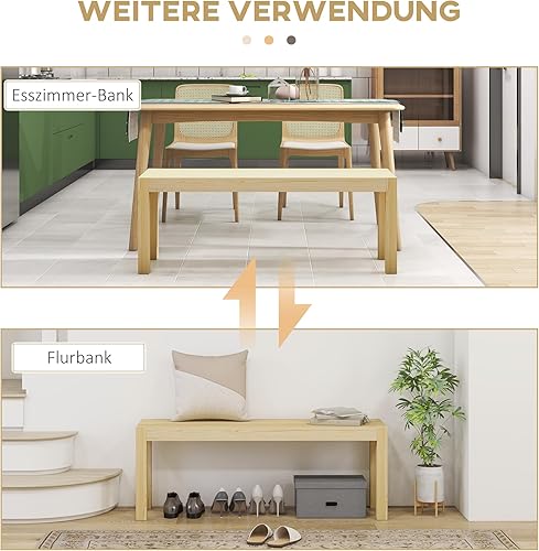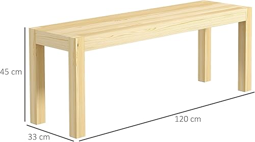 HOMCOM Banc 2 Places en Bois Banc de Cuisine Style campagnard, Banc pour Manger dans Le Salon, la Cuisine, l'entrée, en pin, Peut Supporter jusqu'à 240 kg, 120 x 33 x 45 cm, Naturel