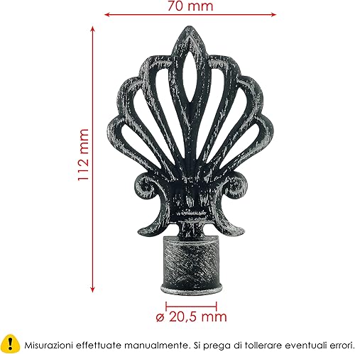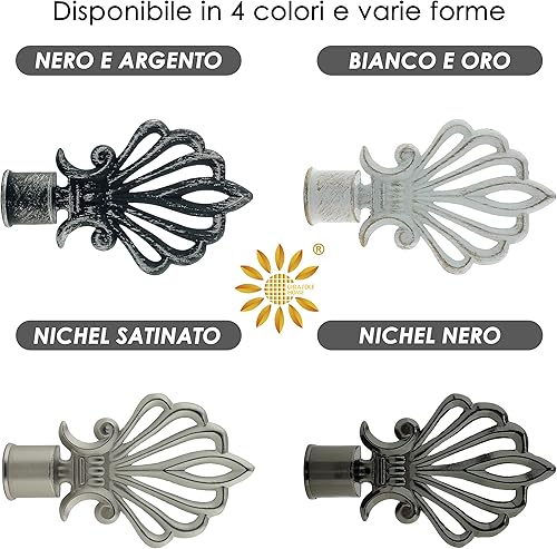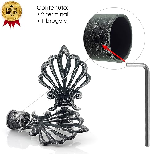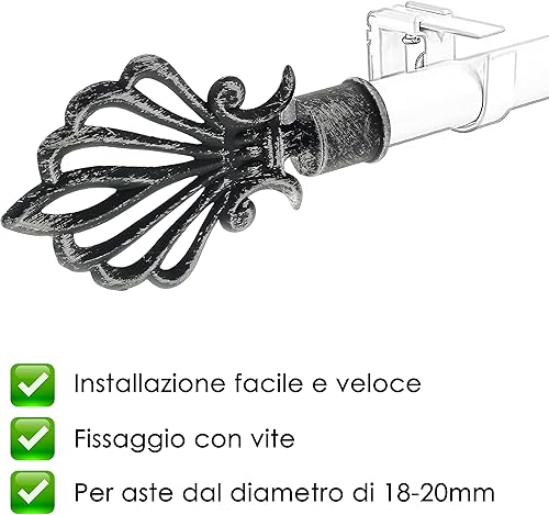 GIRASOLE HOME® Terminal Coquillage pour barre de rideau de diamètre de 18-20 mm 2 pièces en alliage de zinc (Noir et Argent)