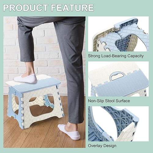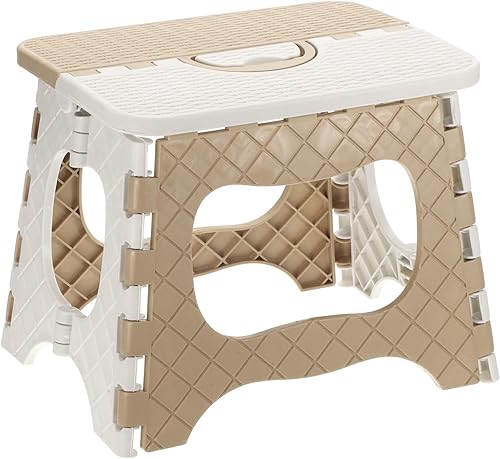 sourcing map Marchepied pliable de 22,9 cm pour adultes, capacité de 125 kg, tabouret antidérapant avec poignée, petit marchepied pliable, kaki pour salle de bain, chambre à coucher, cuisine