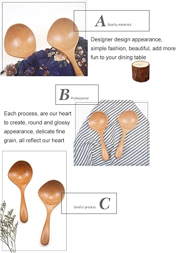 Louche en Bois, 16cm Cuillère à Porridge en Bois à Long Manche Cuillère de Service en Bois Fabriquée à Main, Grandes Cuillères de Cuisine Profondes pour Soupe Sauce