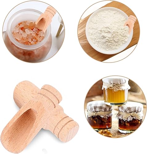 Cuillère à Sel en Bois 16 Pièces Petite Cuillere a Epices Cuillère à Sel de Bain avec Manche Court Mini Cuillère en Bois pour Épices Condiments Sucre Café Thé (5.1cm)