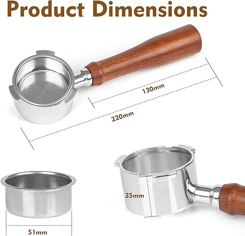 Porte-filtre expresso sans fond 51 mm, 51 mm avec panier filtre en acier inoxydable compatible avec machine à café Smeg DeLonghi Dedica EC680/EC685/EC785/EC820/EC850/EC860
