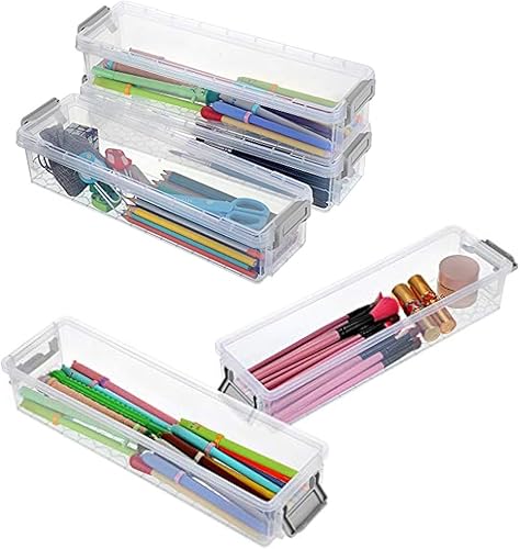 Cobenga Lot de 6 boîtes de rangement transparentes de 34 cm de long, rectangulaires avec clip, empilables, en plastique translucide, pour la maison, le bureau, la cuisine