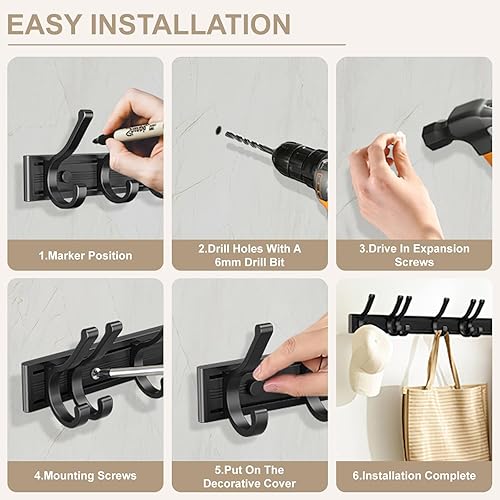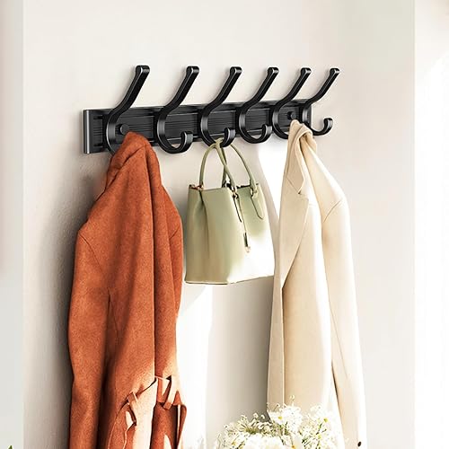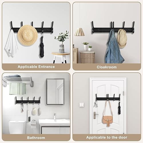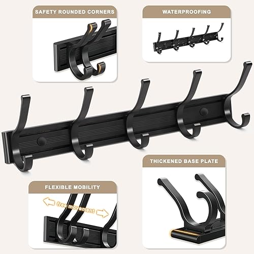 GIOVARA Porte Manteau Mural 2 pièces Patère Murale avec 5 Crochets Mobiles, Porte manteau mural avec etagere, Patère Murale Porte-Manteau Mural pour Cuisine, Salle de Bain et Chambre, Noir