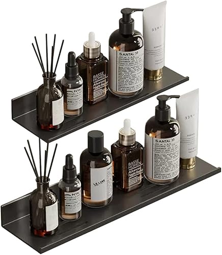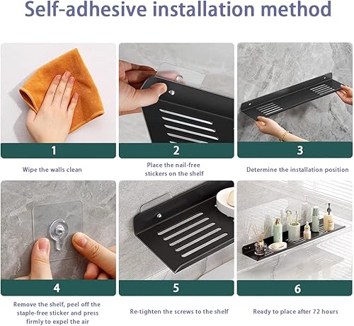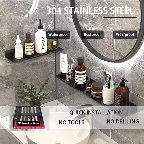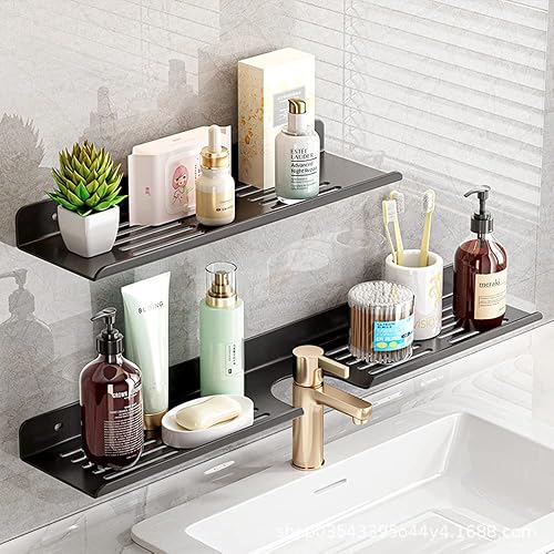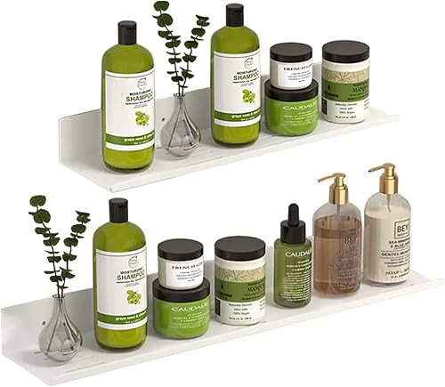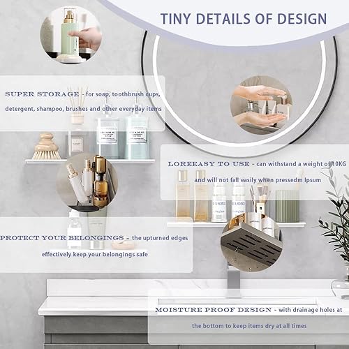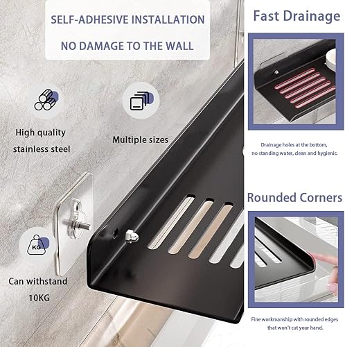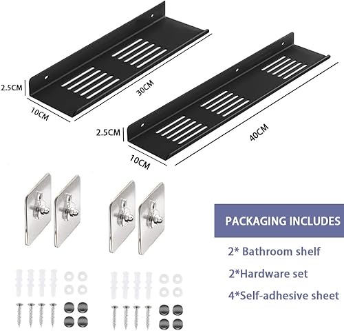 Biutimarden Étagère De Douche Paquet De 2 Auto-Adhésif, Autocollant avec Trou De Drainage Acier Inoxydable Étagère De Salle De Bain Antirouille Pas De Perçage Rangement(30CM & 40CM,Blanc)