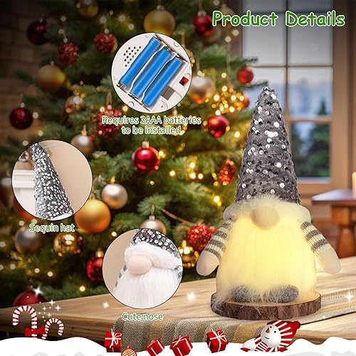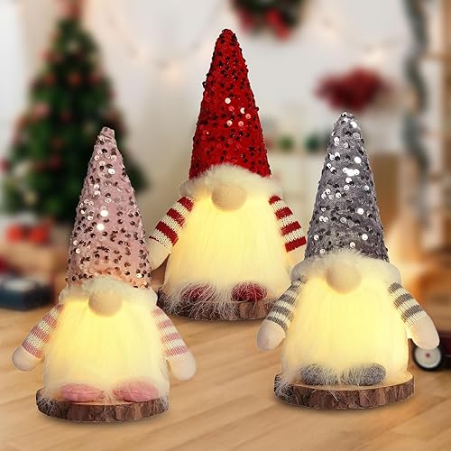 3 PCS GNOME de Noel Lumineux,LED de Noël en Peluche Gnomes, Lutin de Noel Farceur de Peluch,Noel Nain Christmas Lumineuse, Décoration de Noël Intérieur, Ornements Scandinave Suédois Faits à la Main