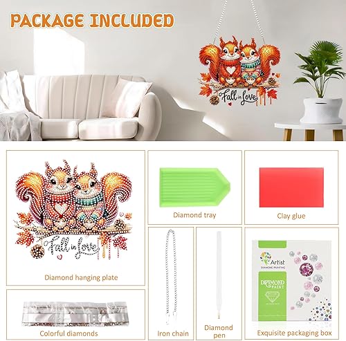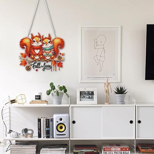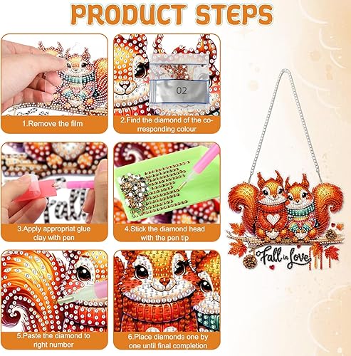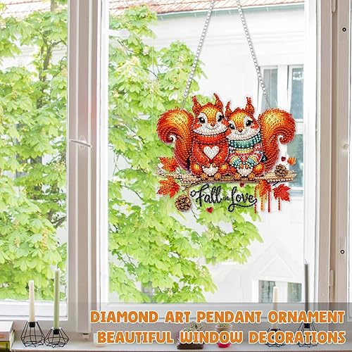 DOMROM Pendentif de peinture diamant d'automne - Peinture diamant animal - Décoration de fenêtre - Motif écureuil - Décoration diamant pour enfants et adultes