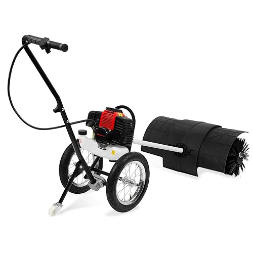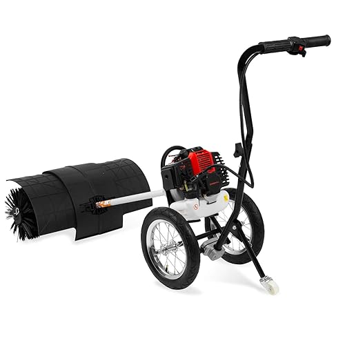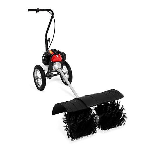 EBERTH Balayeuse Mécanique, Balayeuse Motorisée, Moteur à Essence 3CV, Moteur 2 Temps, 52ccm, 2X 30cm de Rouleau de Balayage, Largeur de Balayage 60cm, avec Roues, Capot de Protection