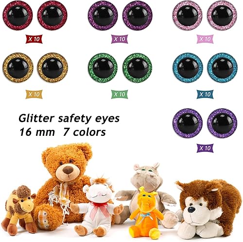 SourceTon Lot de 70 grands yeux de sécurité en plastique à paillettes pour la fabrication de marionnettes, ours, travaux manuels de poupées (7 couleurs, 10 chacun)