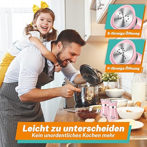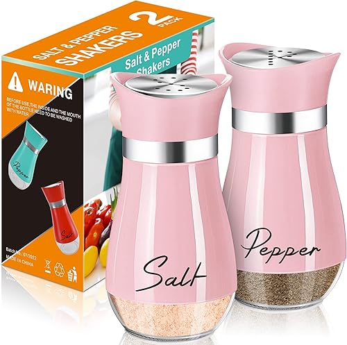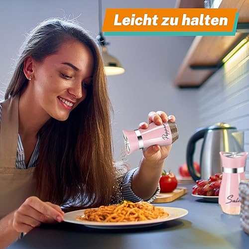 Salière et poivrière - 120 ml - Petite salière et poivrière - Avec couvercle en acier inoxydable - Salière et poivre - Pour cuisine, déplacement, camping-car, barbecue - Rose