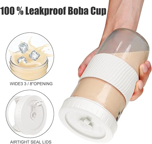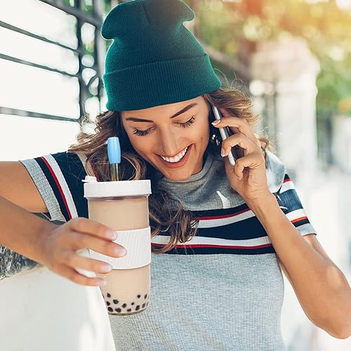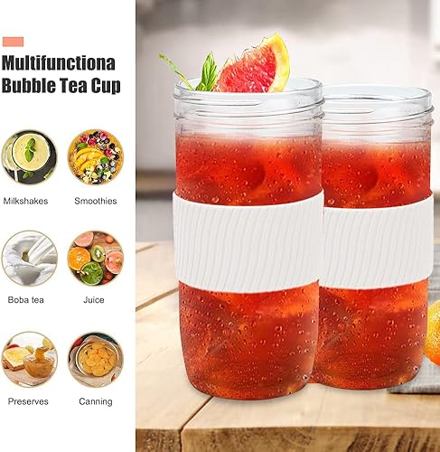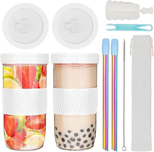 UHAPEER Bubble Tea Lot de 2 Verres à thé avec Couvercle et Paille, Verres à Visser avec Couvercle 730 ML, réutilisables Mason Jar