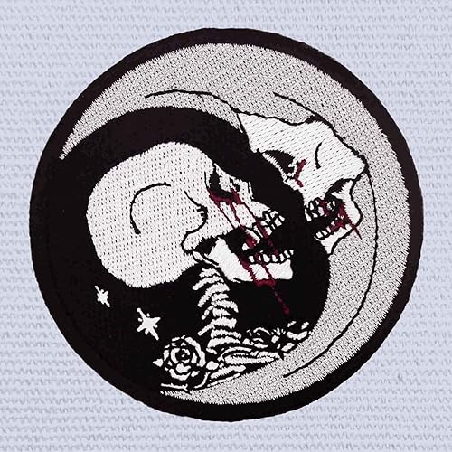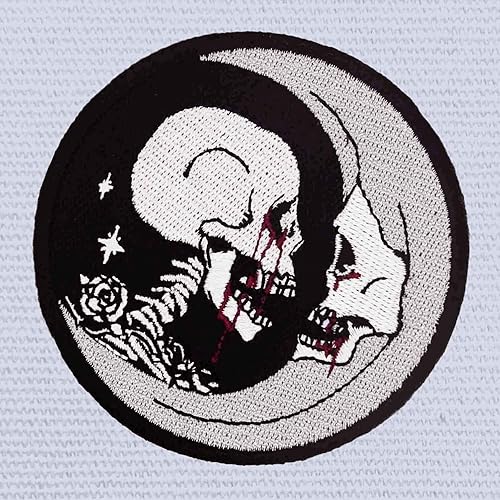 Patch brodé en forme de Crâne de croissant de lune, Regarder affectueusement, à coudre ou à coller avec fer à repasser