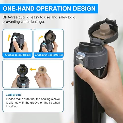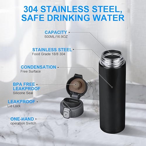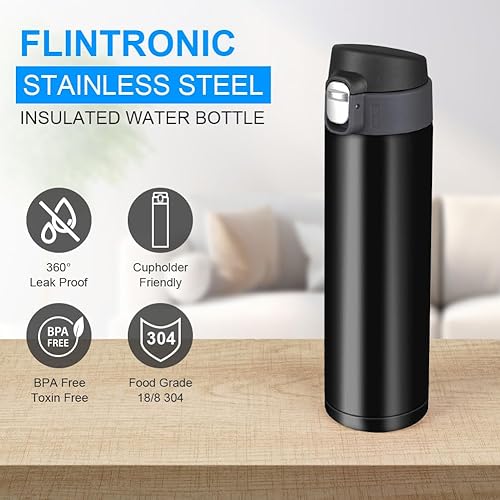Flintronic Gourde Isotherme, 500ML Bouteille Isotherme en Acier Inoxydable, Gourde Inox, Mug Isotherme Etanche, Bouteille D'eau Lsotherme, Bouteille Lsotherme En Acier Lnoxydable, Tasse De Voyage