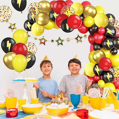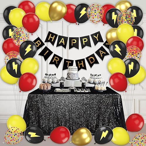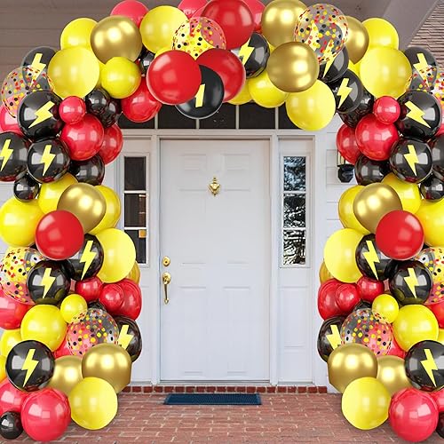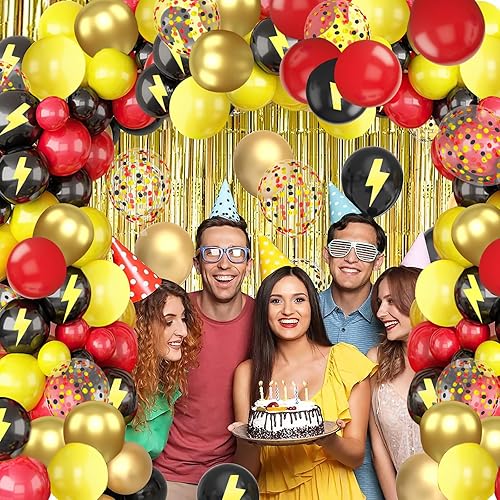 Ballon Rouge et Noir Or Jaune Ballons Rouge Noir Dorés Confettis Éclair Ballon pour Fête de Dessin Animé, Anniversaire, Graduation, Soirée à Thème Disco