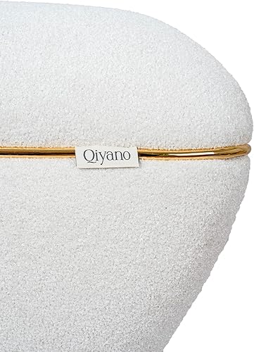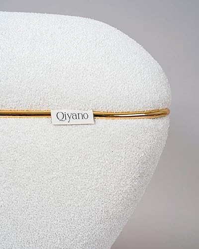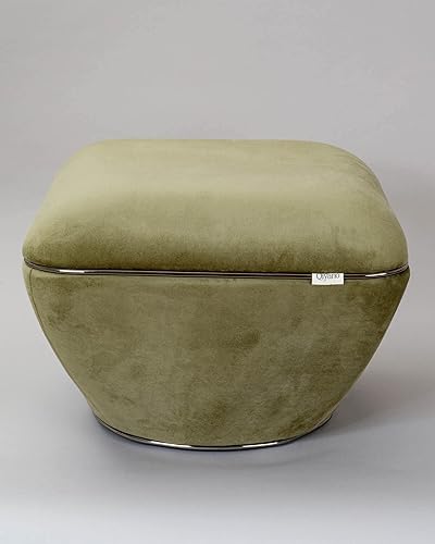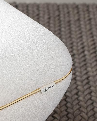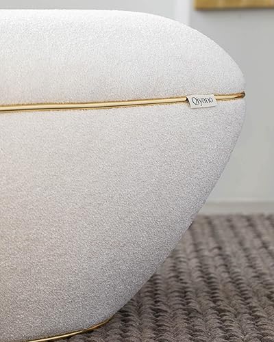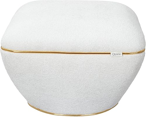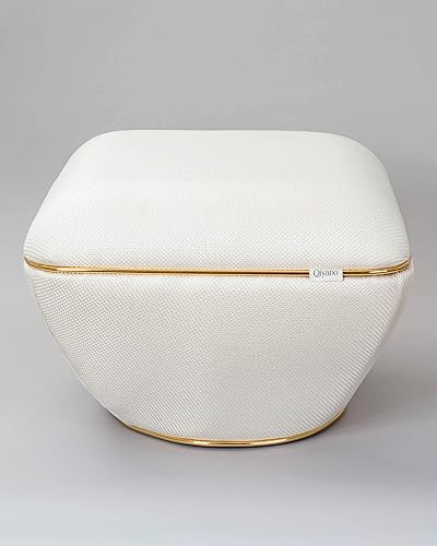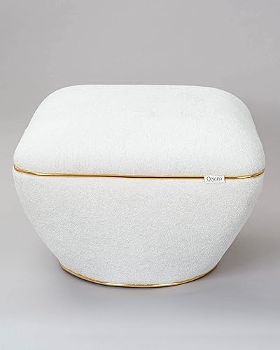 Qiyano Pouf - Grand tabouret en tissu structuré beige moderne carré confortable pour salon, chambre à coucher - Décoration en cuir synthétique doré - Hauteur : environ 43 cm - Couleur : beige