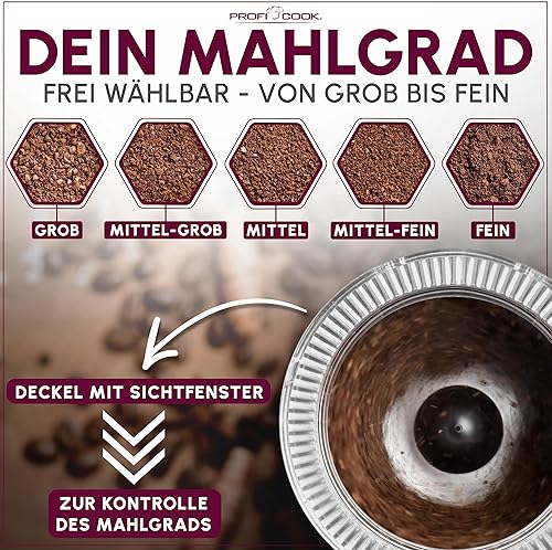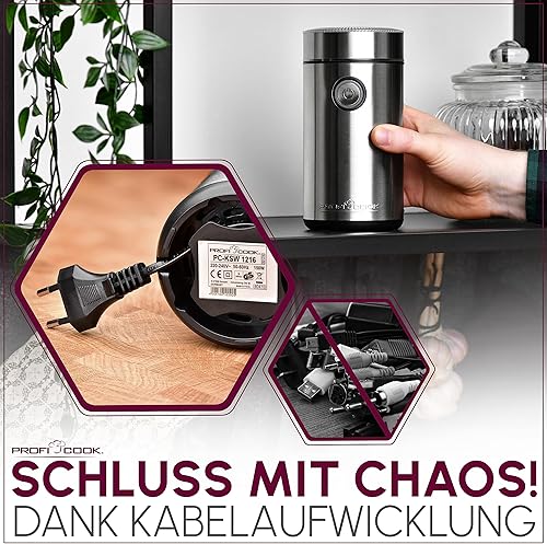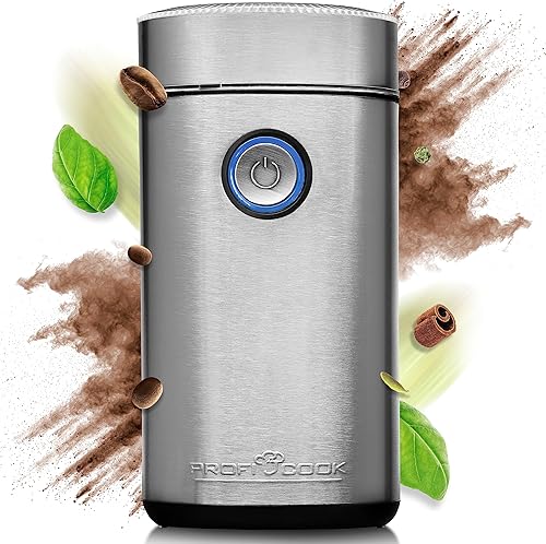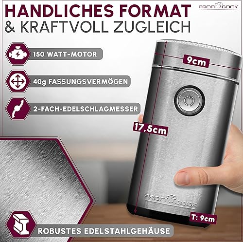 Moulin à café ProfiCook pour moudre des grains de café | Moulin à café électrique à 2 vitesses Couteau en acier inoxydable | Grinder avec fenêtre & 40gr. Réservoir | Acier inoxydable - PC KSW 1216