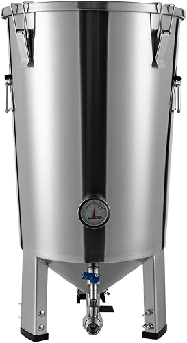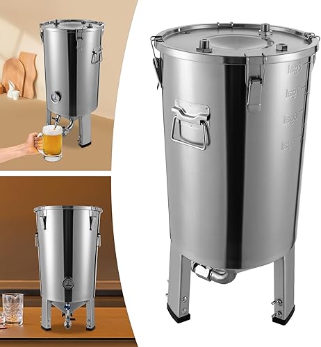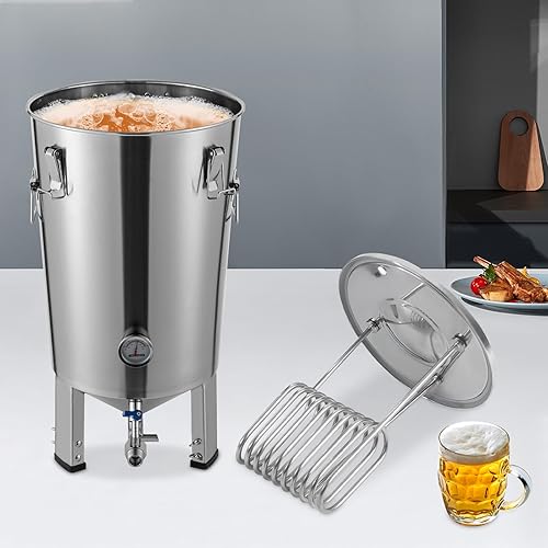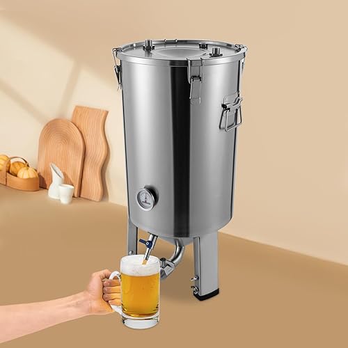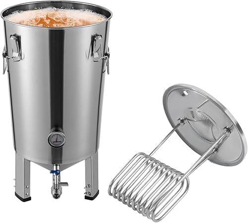 Récipient de fermentation conique en acier inoxydable Cuve de fermentation avec refroidisseur pour le brassage domestique pour la fermentation de la bière domestique du vin du lait Argent 59,7 x 33,3