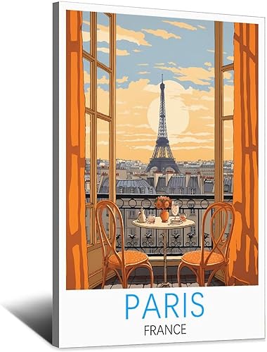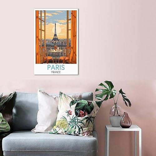 iPuzou Poster de voyage vintage Paris France 40 x 60 cm - Décoration murale - Impression sur toile