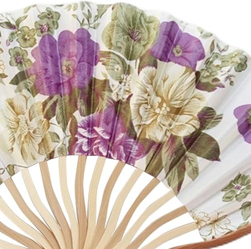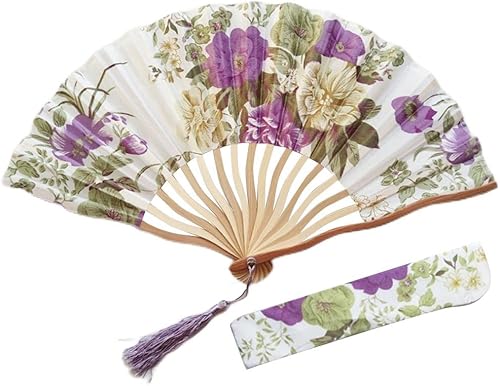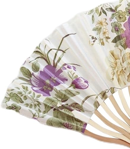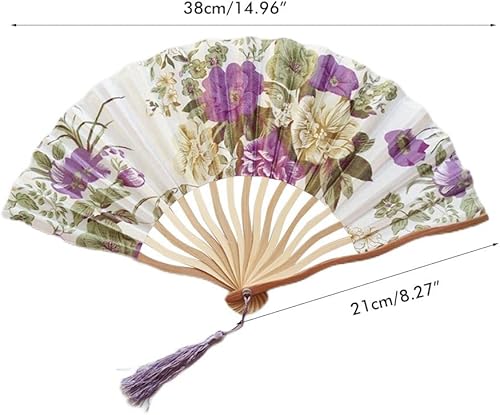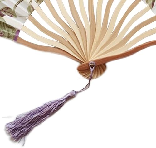 Éventail pliable Éventail à main en tissu à fleurs chinoises Manche en bambou Éventail mural Style chinois Avec pompons pour décoration murale et cadeaux