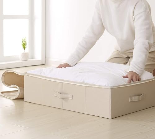 iwill CREATE PRO Sac de Rangement sous Le lit, boîte de Rangement à Couvercle Plat, Beige