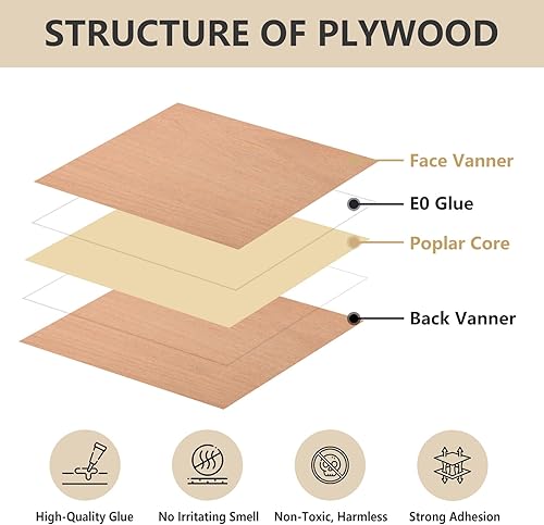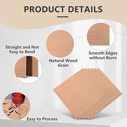 Creatorally Contreplaqué 3mm, Plaque Bois pour Gravure Laser, Planche Hêtre Rouge 30x30 cm 6 Pièces pour Découpe CNC Peinture, Bricolage Projets