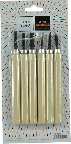 Gouges manche en bois pour linogravure 6 pièces
