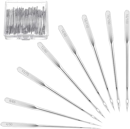 Aiguilles de machine à coudre,80pcs Aiguilles Universelles avec Boîte en Plastique,6 Tailles 65/9 75/11 80/12 90/14 100/16 110/18,pour Singer, Brother, Janome