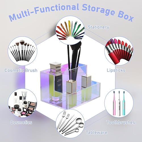 AIMIAO Support de rangement pour pinceaux de maquillage en acrylique, Organisateur de maquillage coloré pour pinceaux de maquillage, eye-liner, rouges à lèvres et autres produits cosmétiques