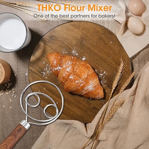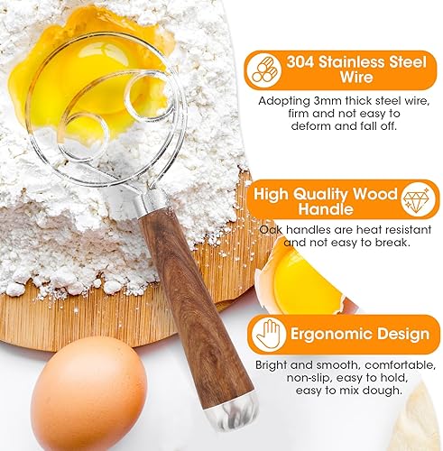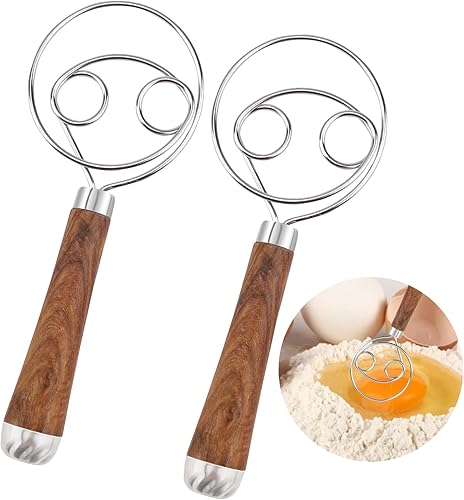 2PCS Fouet Cuisine, Manche en bois Fouet Plat, Acier Inoxydable 304 Fouet Patisserie, Fouet Magique, Fouet Manuel Quatre Cercles Fouet Cuisine Professionnel Mélangeur de Pâte à Pain Patisserie Pizza