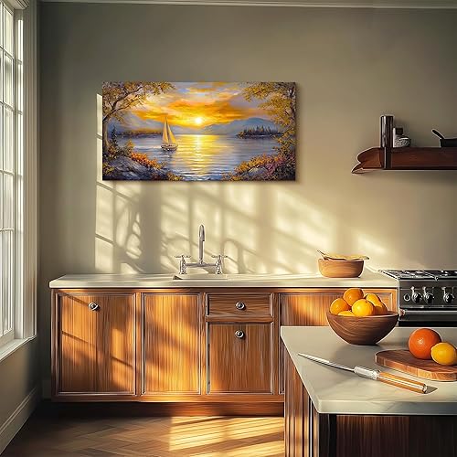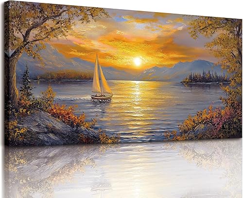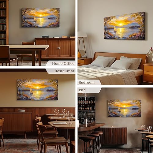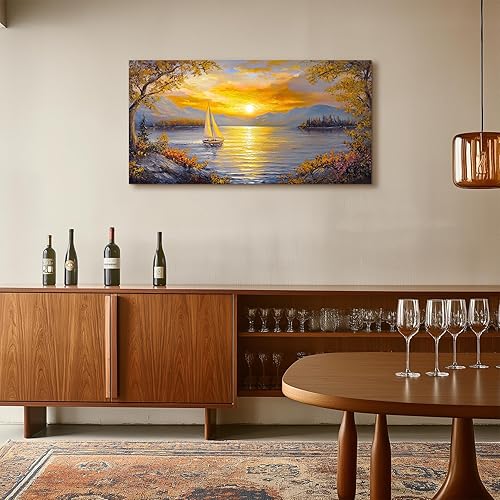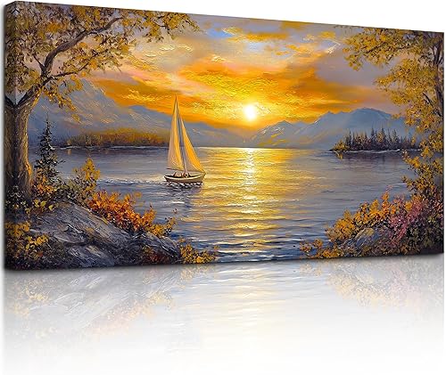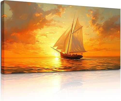 MHARTK66 Tableau Decoration Murale Salon, 50x100 cm Grand Impression sur Toile, Cadre Decoration Murale Coucher de Soleil et Voilier, Moderne Décoration de Chambre Salle De Bain Maison Décorations