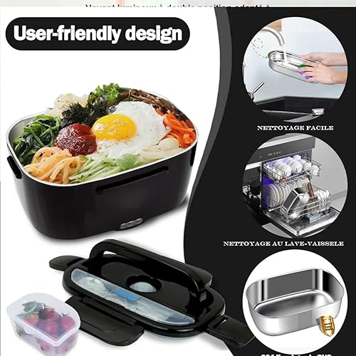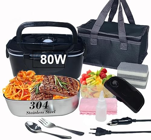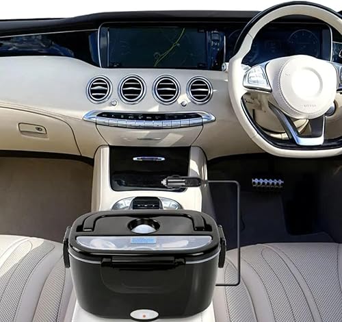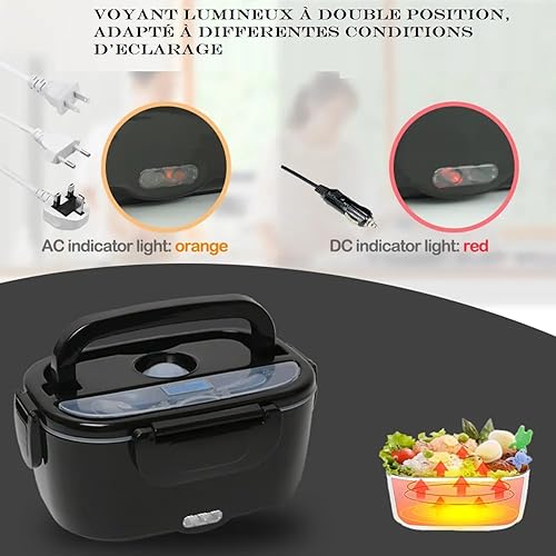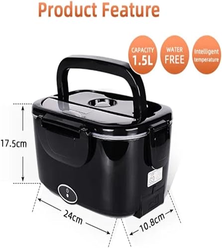 ISY-SHOP Gamelle chauffante, lunch box chauffante électrique 12V24V220V,80W,boite chauffant pour chantier en allume cigare, boite chauffante repas 1.5L,chauffe plat voiture camion, COULEUR NOIRE