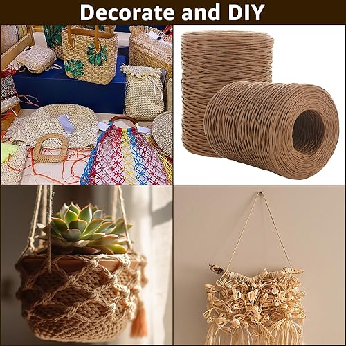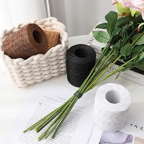 JMIATRY Lot de 4 Raphia à Crocheter 200m, La Cordeline, Fil de Papier Kraft Armé pour bricolage, bouquet de mariage, emballage, bricolage, composition florale