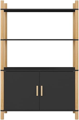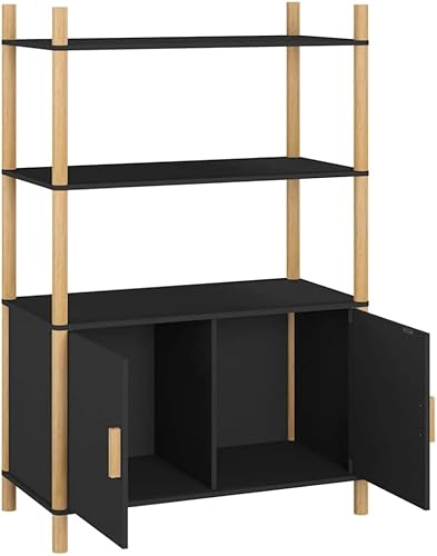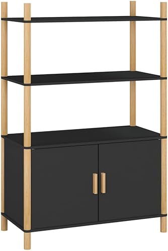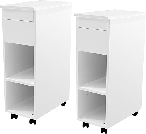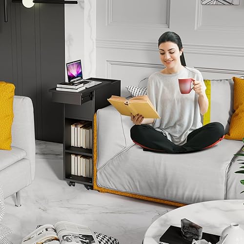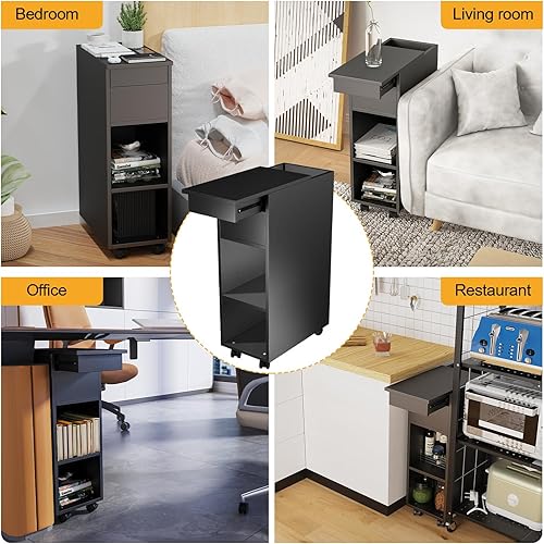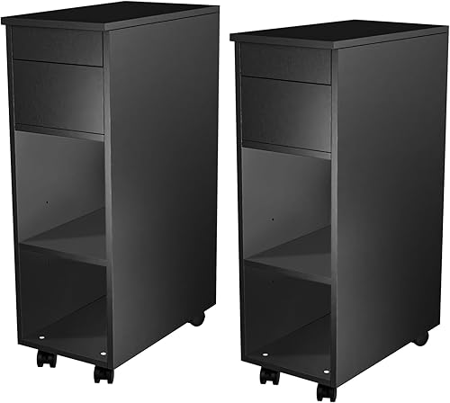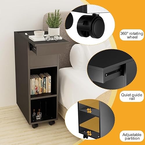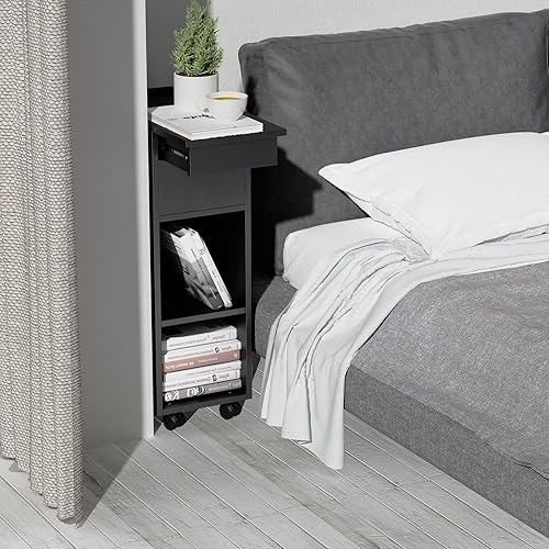 CHOWGOLI Table de Chevet Etroite avec Tiroirs et Compartiments Ouverts, avec roulettes Facile à Déplacer, Petite Table De Chevet, 45x25x70 cm,Noir