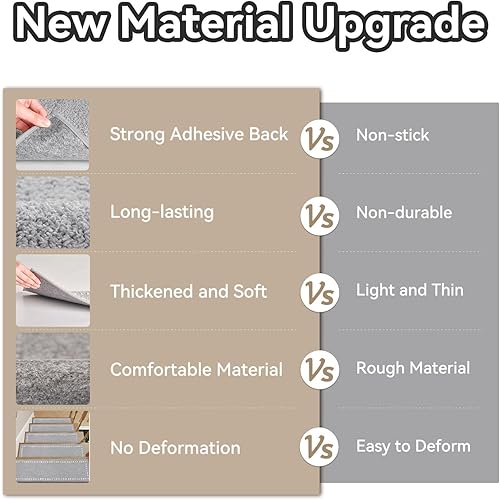 SIXHOME Marchettes d'Escalier 20cm*76cm 15PCS Anti Derapant Tapis Moquette Escalier Moquette Autocollante Tapis d'Intérieur Antidérapant avec Adhésif Réutilisable (Beige)
