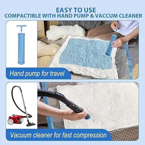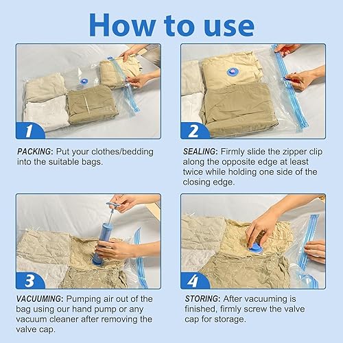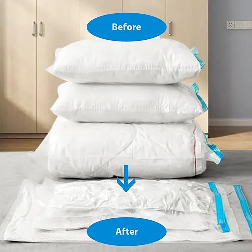 Lot de 6 sacs de rangement sous vide (2 moyens, 2 grands, 2 jumbo) – Sacs peu encombrants pour vêtements, couettes et literie – Sacs de rangement réutilisables avec fermeture éclair hermétique et