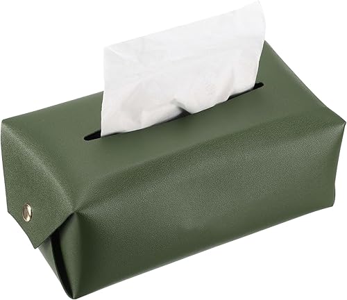 sourcing map Housse de boîte à mouchoirs rectangulaire en cuir synthétique avec bouton pour salle de bain, chambre à coucher, cuisine (vert, 17 x 10 x 7 cm)