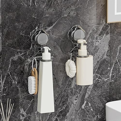 Porte-bouteille de gel douche à ventouse – Distributeur de savon mural – Organisateur de douche | Support de bouteille de salle de bain à ventouse puissante, installation facile, pas de perçage