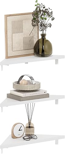 Furinno Rossi Étagères flottantes d'angle Triangulaire, étagère d'affichage Murale, Pin Ambré, Lot de 3